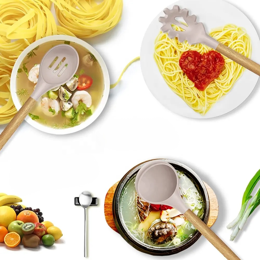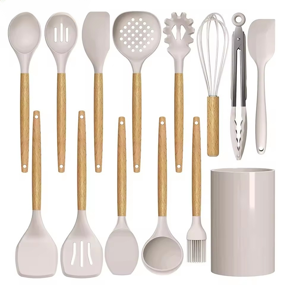 실리콘과 나무 주방용품 세트